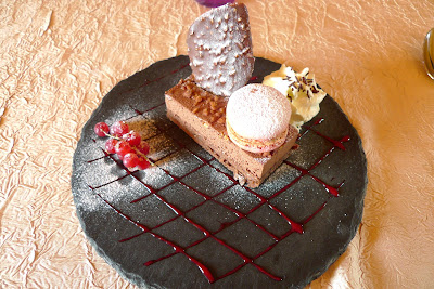 Det här var vår lunch häromdagen i den lilla medeltidsbyn Le Castellet i de provencalska bergen. En liten "amuse-bouche" - miniförrätt med endiver och champinjoner, sen en "souris d'agneau", en genommör lammbenknota med grönsaksgratäng. Och så en makalöst god chokladtårta med färska vinbär till efterrätt.